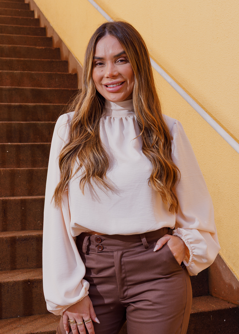 A Blusa Carlota é a combinação perfeita entre elegância e versatilidade. Confeccionada em tecido leve que não amassa, oferece praticidade sem abrir mão do estilo. Seu design conta com mangas bufantes que adicionam um toque de sofisticação e uma gola alta com faixa para amarração, que pode ser usada tanto na frente quanto nas costas, permitindo diferentes formas de uso. Ideal para todas as ocasiões do trabalho ao jantar especial, a Blusa Carlota é aquela peça-chave que transforma qualquer look com charme e refinamento.