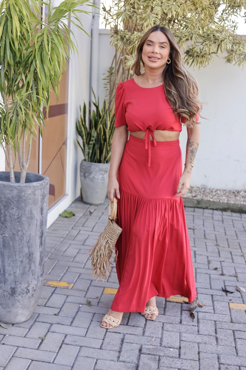 O Conjunto Mirella tras toda Elegância e personalidade pro look, composto pela Blusa Cropped e Saia Longa, no tecido de Viscose, trazendo fluidez e conforto.
