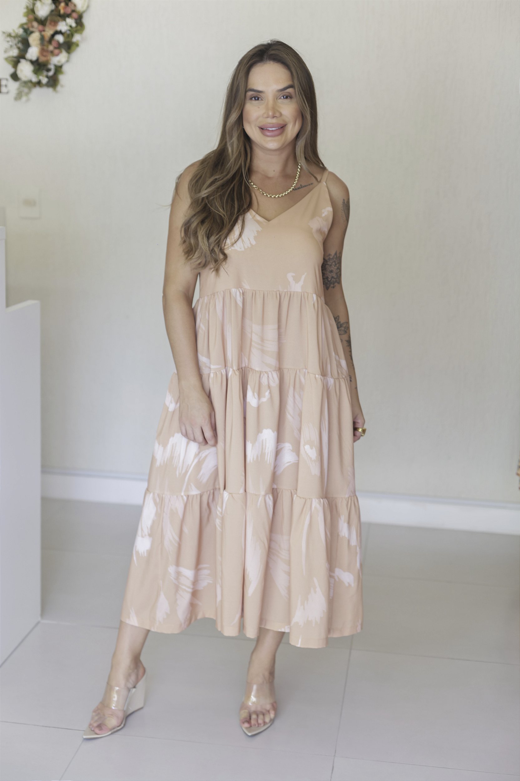 O Vestido Mada é a combinação perfeita de sofisticação e versatilidade, ideal para dias quentes e eventos casuais. Seu caimento impecável valoriza o corpo feminino, proporcionando elegância e conforto. Combine com saltos altos para um look sofisticado ou tenis para um visual moderno e leve.
